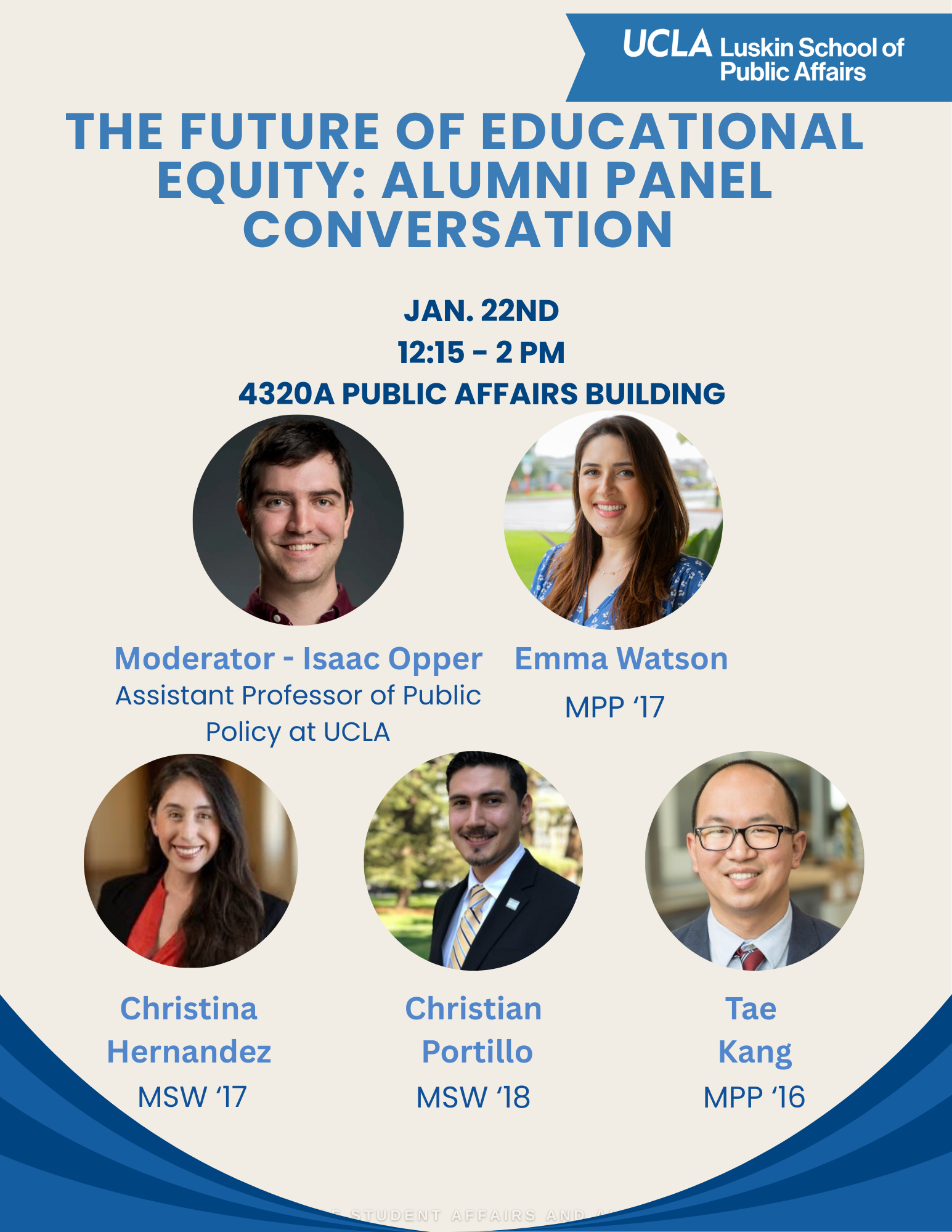 The Future of Educational Equity: Alumni Panel Conversation Jan 22 12:15 pm - 2:00 pm The Future of Educational Equity: Alumni Panel Conversation