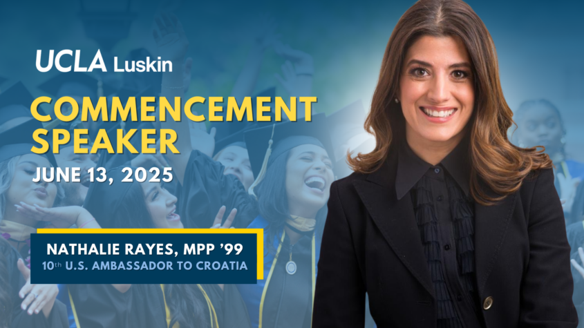 Rayes, who came to the United States from Venezuela at age nine, recently concluded her diplomatic service as the 10th U.S. Ambassador to Croatia. On June 13, she will return to UCLA Luskin to serve as keynote speaker for the 2025 commencement ceremonies to be held at UCLA’s historic Royce Hall and Ackerman Grand Ballroom.